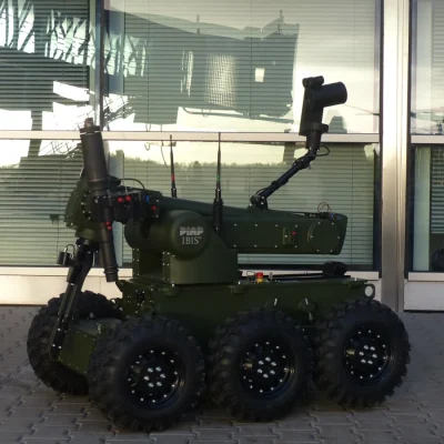 PIAP IBIS® is a robot designed for pyrotechnic operations and reconnaissance. Upon installation of additional devices, it can be used, among others, for disposal of dangerous objects, chemical detection and rescue operations.